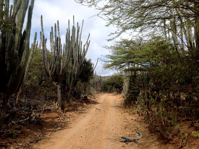De noordelijke helft van het eiland is heuvelachtig en nationaal park. Braaf als we zijn, hebben we al een pasje gekocht om te mogen duiken (én snorkelen). Met dit pasje mogen we ook de cacti bekijken.