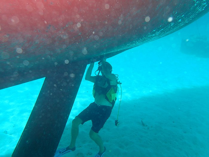 In zulk helder water is inspectie van de kielkast een mooie klus.