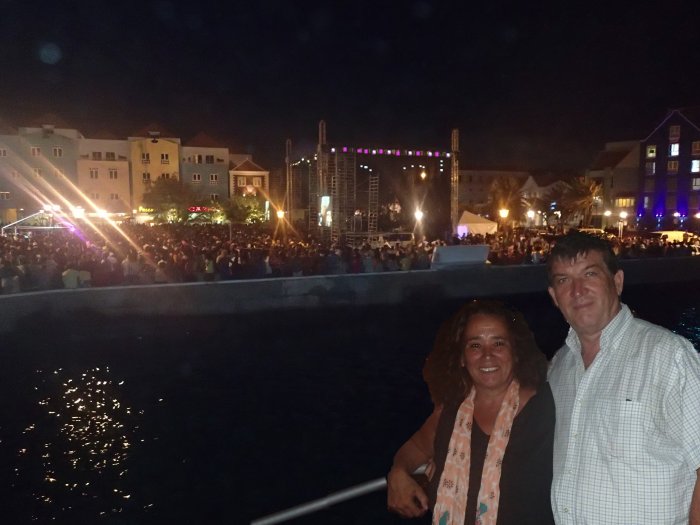 Wij gaan naar een voorprogramma. Vanaf de Pontjesbrug zien we El Gran Combo de Puerto Rico. En als de brug opengaat terwijl we er nog op staan, zwaaien we vanzelf naar een prachtige plek op de eerste rij.