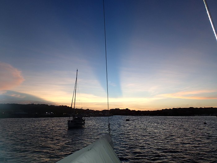 de hoop dat het zand op de bodem de rotzooi en aangroei wegschuurd. Grabbag pakken en bijboot vastsjorren doen we donderdag, net zoals de laatste dingen zeevast zetten en uitklaren.