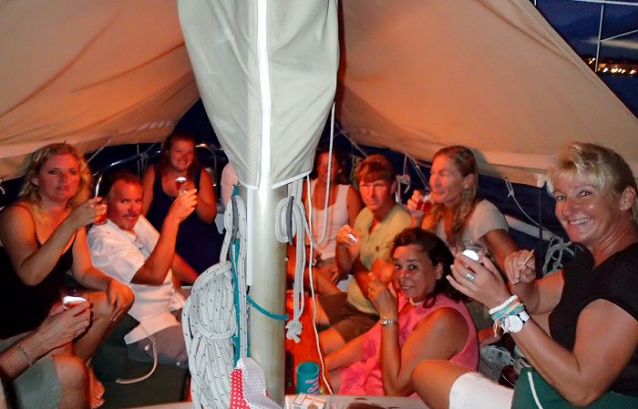 De borrel drinken we als het in Nederland net 24 oktober is geworden. Supergezellig weer met de crew van True Blue, Double Trouble, Aquamarijn en Rafiki.