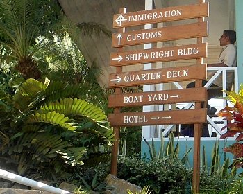 "I will look after your boat...", belooft Barry met een grote greins. "Only 800 Teetee dollah a month...". Dat is ongeveer 100 US dollars. We lopen door.