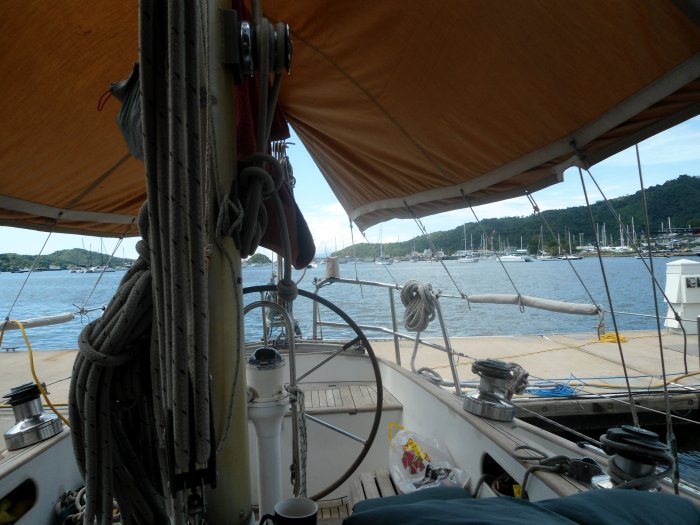 A beautiful spot with a view on the entire bay, but you have to pay as if you were 60-ft. Bad luck, but we don't want to go on anchor considering all work we have to do.