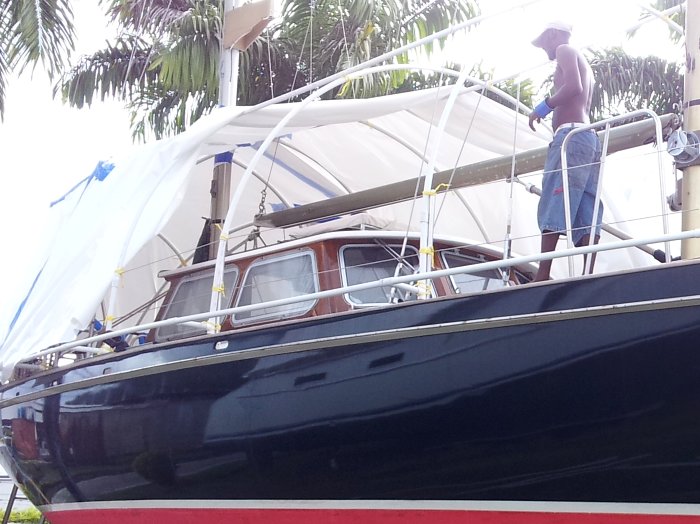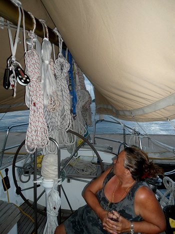 A week of hard labour follows. All sails, sheets and ropes have to be sweetened. A nasty job with all the rainfall. It's clean but doesn't dry and after a while everything starts to stink like an old kitchen cloth. Disencouraging.