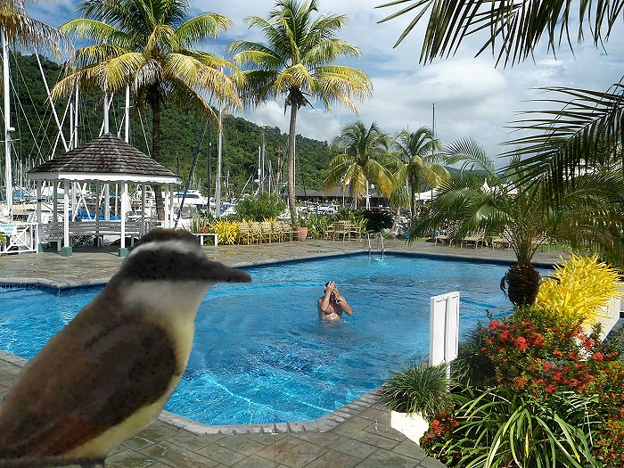 And we? Every afternoon we jump into the hotel-pool. Cool water, exotic birds, deck chairs, colourfull flowers and we are fit again... at least for half an hour.