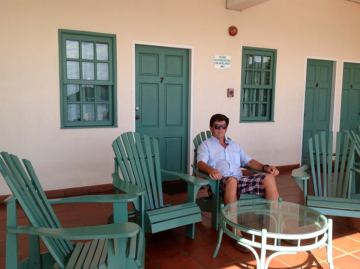 De dag voor lift-out trekken we al in het hotel van Peake's. We mogen op de high security afdeling niet op Margalliti slapen. Gelukkig maar, want we kunnen inmiddels wel wat comfort in de vorm van douche en airconditioning gebruiken. We hebben een vriendelijke kamer met veranda en uitzicht over de baai.