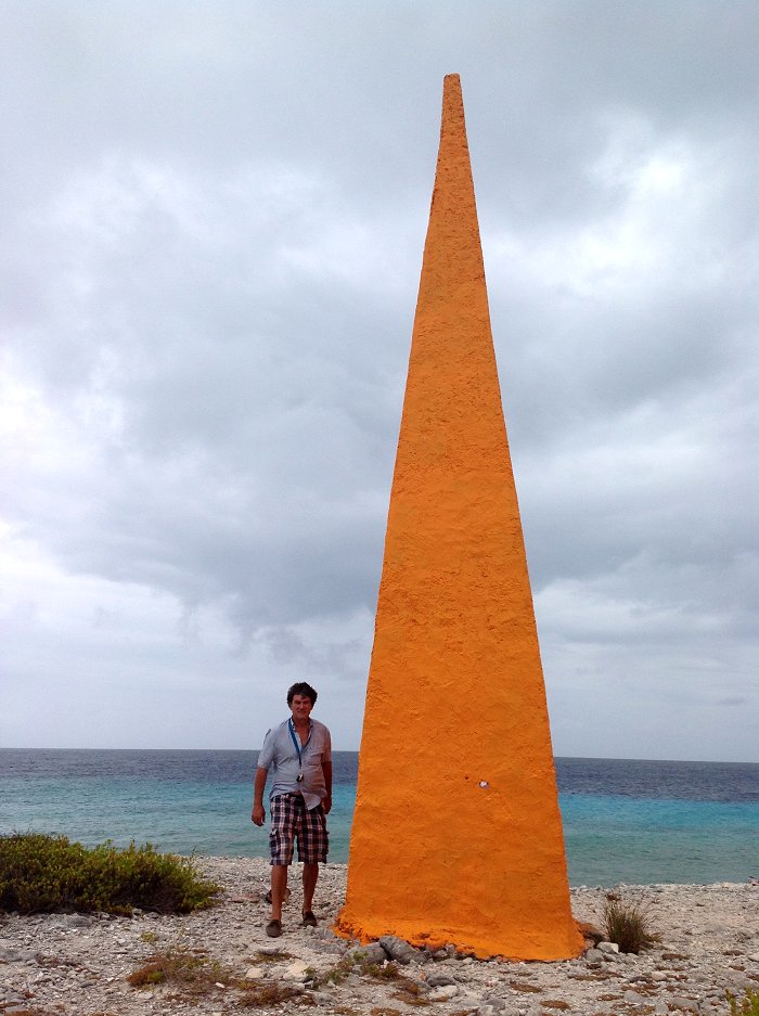 Deze oranje piramide (ze zijn er ook in rood, wit en blauw), gaf vroeger de plek aan waar schepen hun zout van "oranje" kwaliteit konden laden. De slaven zorgden ervoor dat alles aan boord kwam.