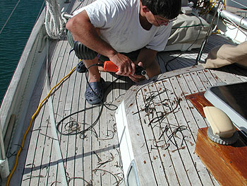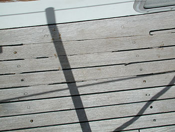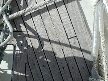 Het dek is op sommige plaatsen zo gesleten, dat