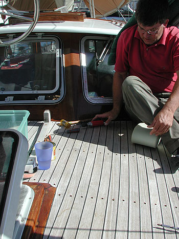 Epoxy met versteviger in de schroefgaten voordat